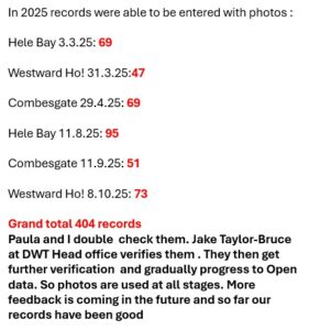 A great wrap-up of the survey year, and a tribute to the large number of members who went out in a range of the best and worst that North Devon weather can throw at us !