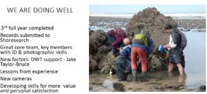 Coastwise survey results forthe year were presented to Coastwise members by Debbie and Paula, with a refresher on taking appropriate identication photos – not always easy. It’s essential for the DWT verifier to have clear, reflection-free photos of key features of the fauna or flora.
